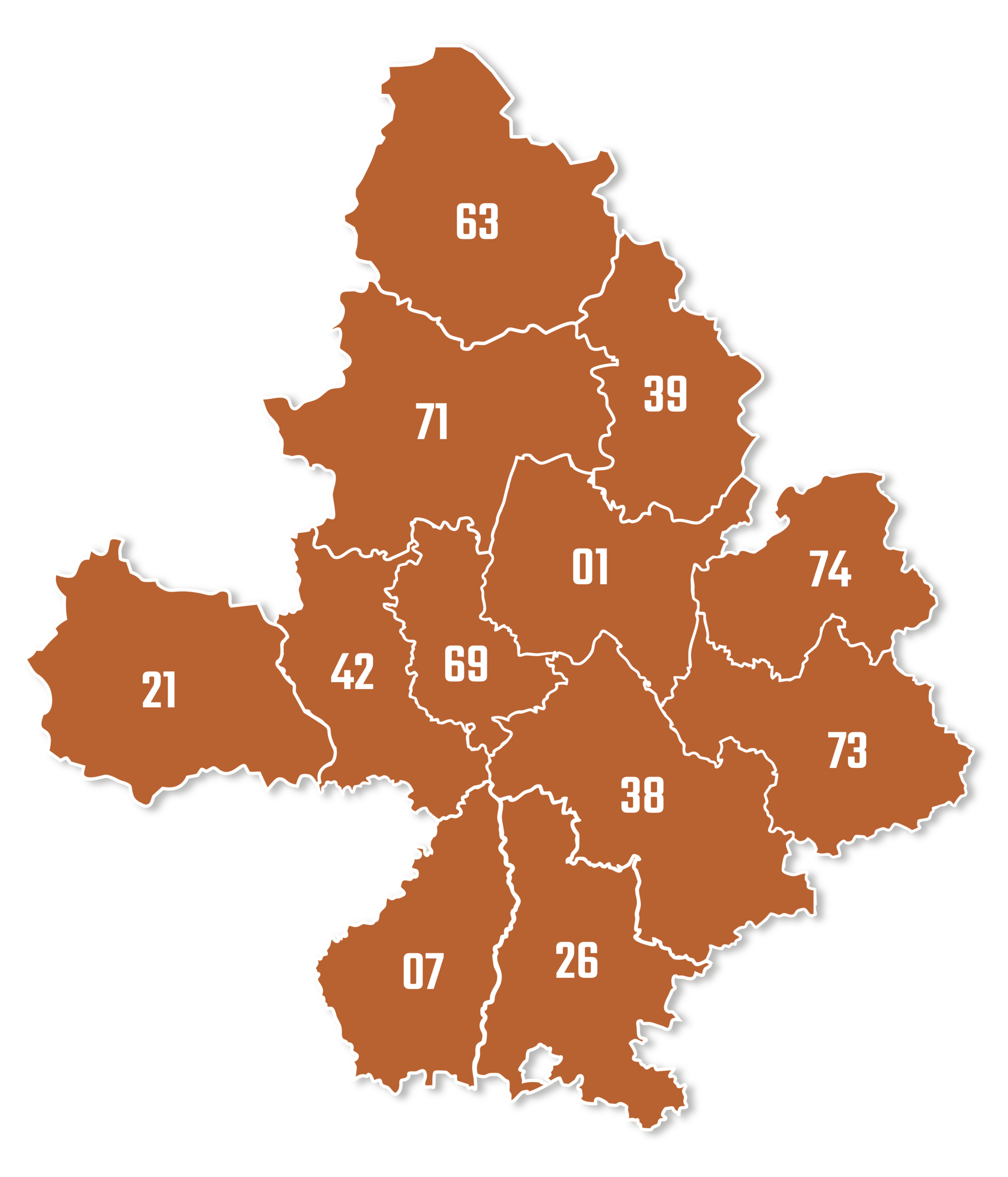 Basé en Rhône-Alpes, j’interviens principalement sur une large zone comprenant :